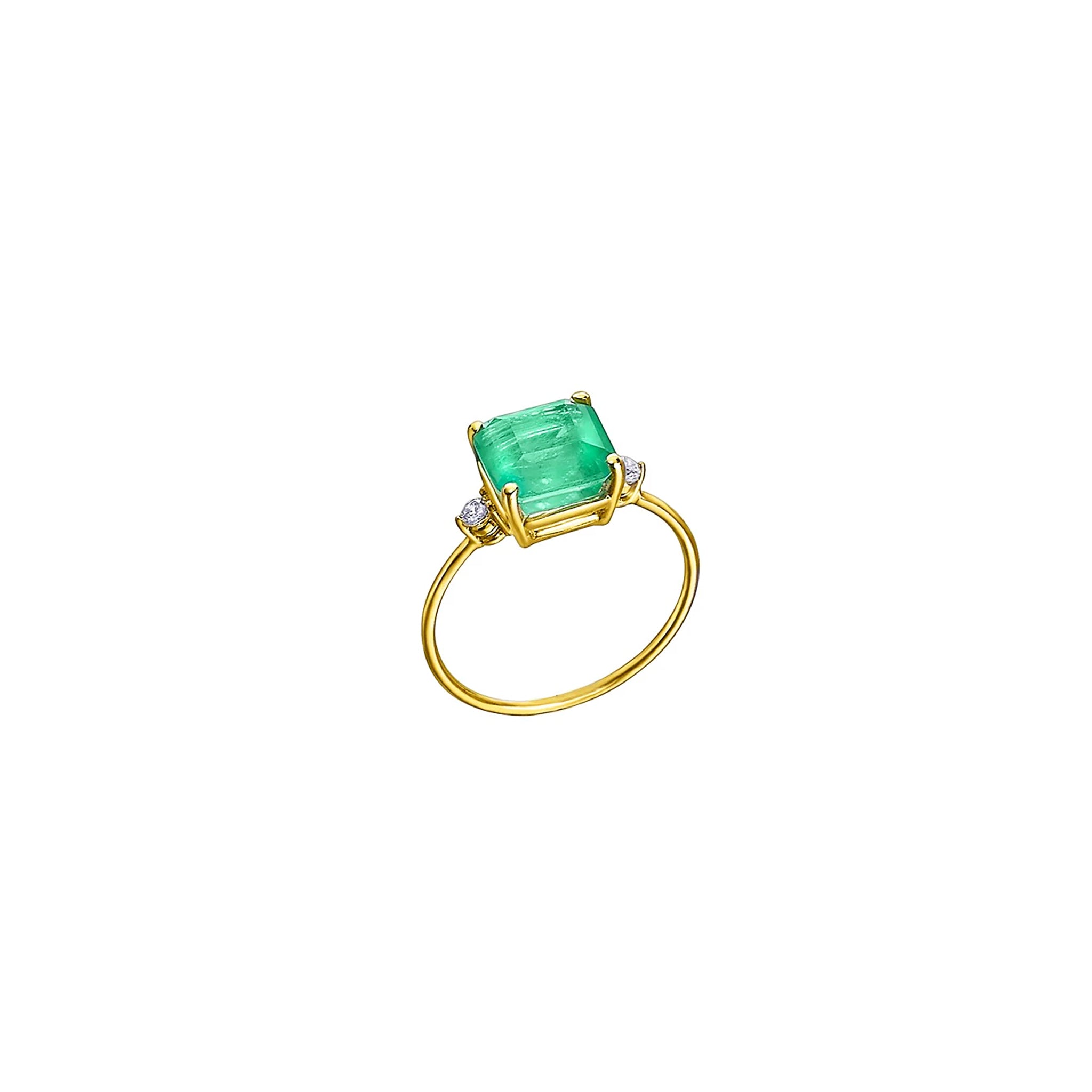Yellow gold, green quartz and white topaz ring