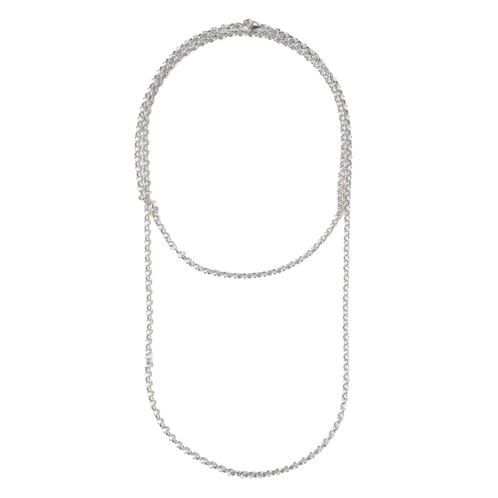 Silk and silver lace necklace, 130cm long, sliding loop, available in golden silver and golden silk, and pink silver and black silk.
