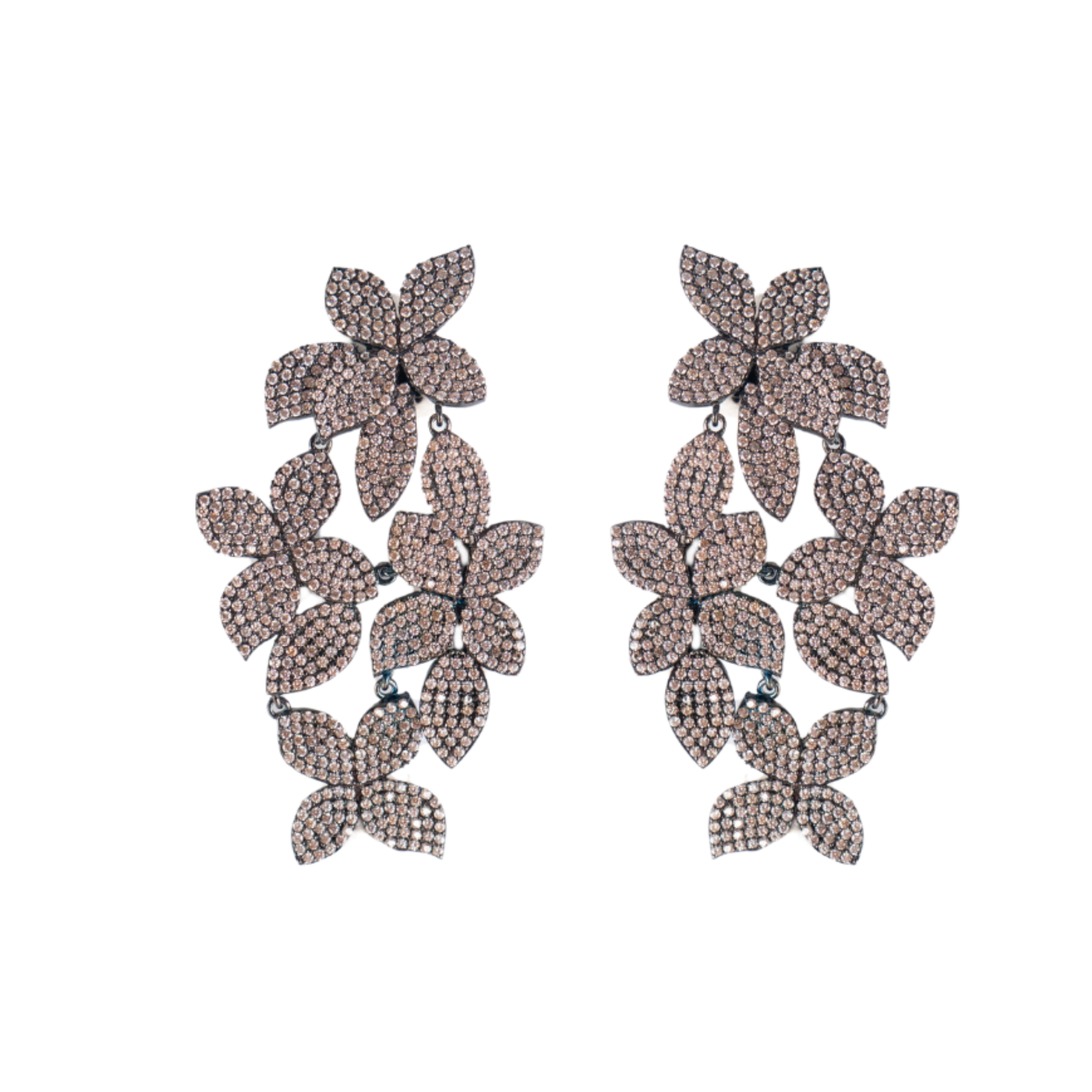 Orecchini in argento 925 rodiato, dorato, brunito con zirconi.