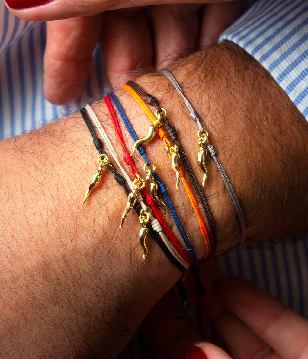 Nylon bracelet, yellow gold horn